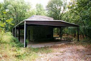 A Group Shelter used often for school groups, has been constructed near the Blue Heron Trail. It is accessible to school buses by taking the road (normally gated) past the driveway to the interpretive building.